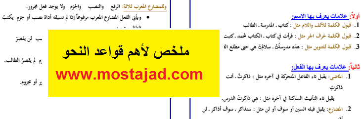ملخص لأهم قواعد النحو في اللغة العربية التفاصليل : شكرا لكل من ساهم في العمل و الإنجاز لا تنسونا بصالح الدعاء بالتوفيق للجميع للتحميل المرجو الضغط على الرابط اسفله : هنا