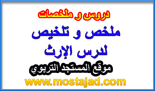 ملخص و تلخيص لدرس الإرث لا تنسونا بصالح الدعاء شكرا لكل من ساهم في العمل و الإنجاز للتحميل المرجو الضغط على الرابط أسفله: هنا