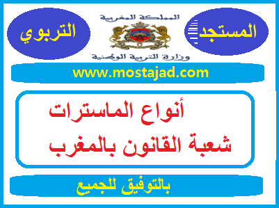 استجابة لطلب الإخوة الأعزاء حول أنواع الماستر بالمغرب شعبة القانون يشرفنا نحن في موقع المستجد التربوي تقديم المساعدة و كل ما يحتاجونه الطالب و الطالبة .