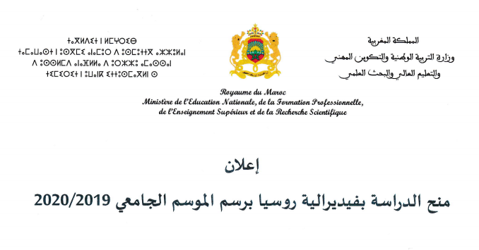 منح الدراسة بفيديرالية روسيا برسم الموسم الجامعي 2019/2020 للإطلاع على رابط الموقع