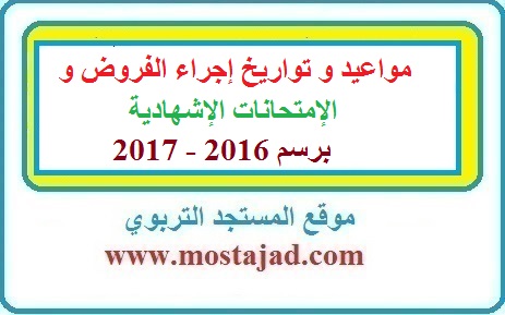 مواعيد و تواريخ إجراء الفروض و الإمتحانات الإشهادية برسم 2016 - 2017 لا تنسونا بصالح الدعاء شكرا لكل من ساهم في العمل و الإنجاز حمل الوثيقة