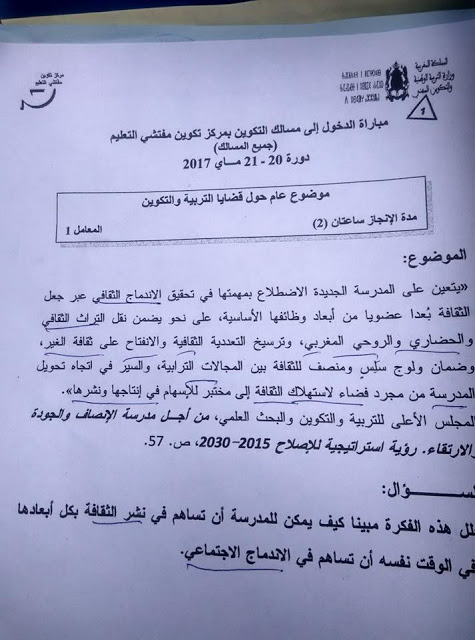 موضوع قضايا التربية والتكوين جميع المسالك في مباراة التفتيش برسم 2017 ||>> التفاصيل : ||>> تجميعية نماذج امتحانات التفتيش للإبتدائي بالتوفيق للجميع لا تنسونا بصالح الدعاء رابط للتحميل Downlaod موضوع العلوم برسم 2017