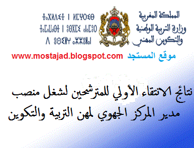 نتائج الانتقاء الأولي للمترشحين لشغل منصب مدير المركز الجهوي لمهن التربية والتكوين