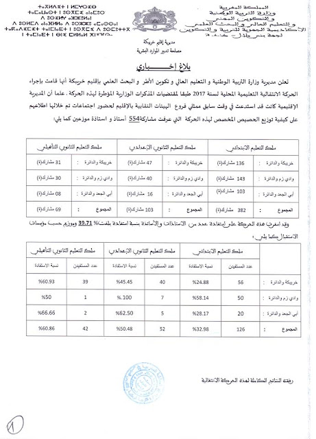 نتائج الحركة الإنتقالية المحلية 2017 بمديرية أزيلال