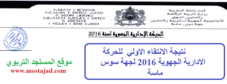نتيجة الانتقاء الاولي للحركة الادارية الجهوية 2016 لجهة سوس