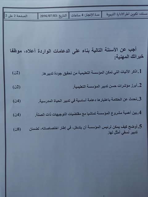 نماذج الإختبارات الكتابية لاجتياز مباريات الادارة التربوية دورة 3 يوليوز 2016