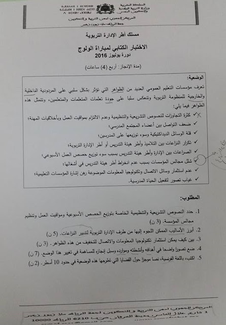 نماذج الإختبارات الكتابية لاجتياز مباريات الادارة التربوية دورة 3 يوليوز 2016