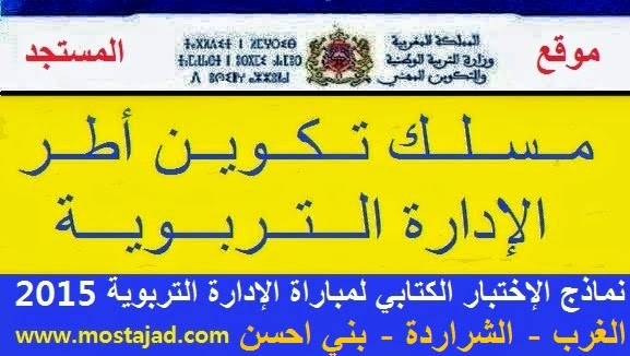 الاختبار الكتابي لمباراة الدخول إلى مسلك تكوين أطر الإدارة التربوية بالمراكز الجهوية لمهن التربية والتكوين2015- الغرب الشراردة بني احسن –