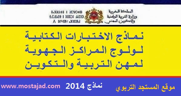 ماذج الإختبارات الكتابية لولوج المراكز الجهوية لمهن التربية والتكوين جميع التخصصات دورة يوليوز 2014 الثانوى التأهيلي
