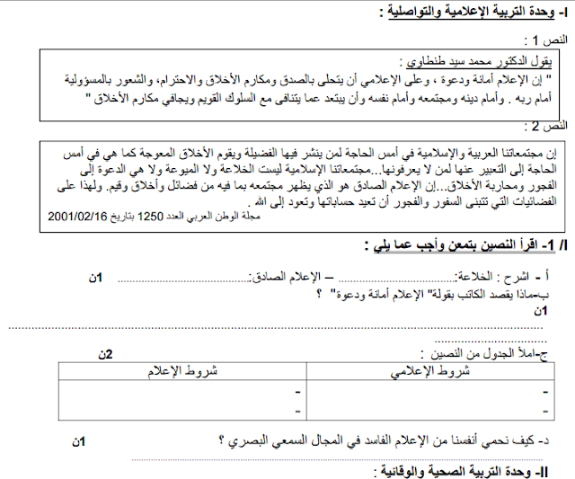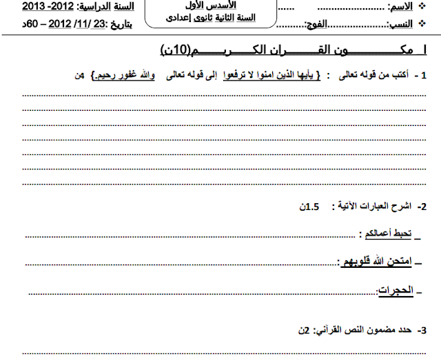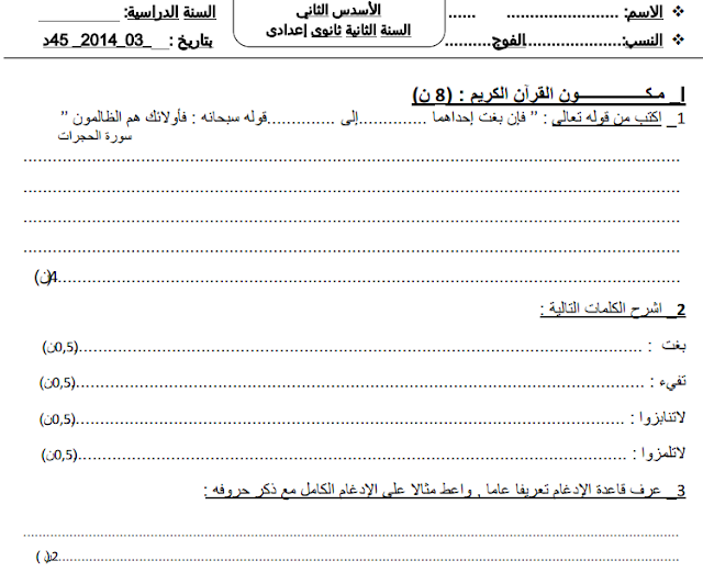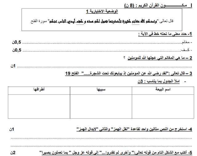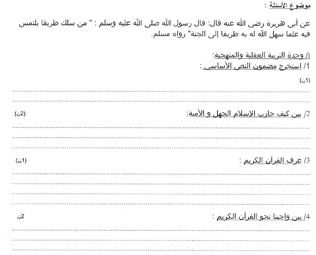 نماذج الفرض الأول الدورة الثانية التربية الإسلامية الثالثة إعدادي -نموذج4-