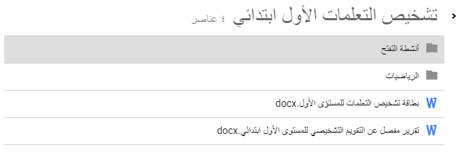 نماذج تشخيص التعلمات للمستوى الأول ابتدائي