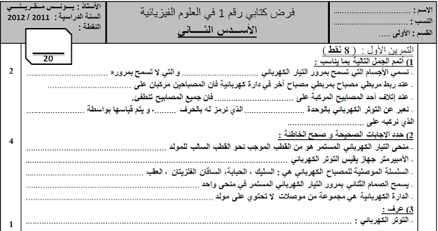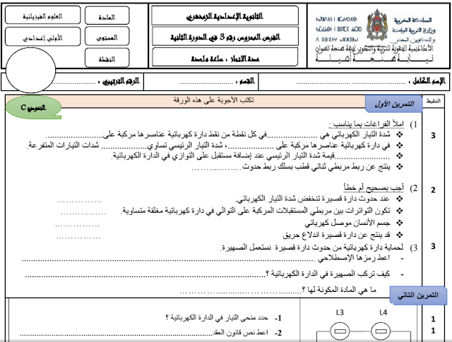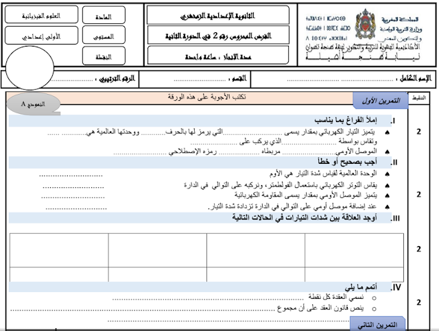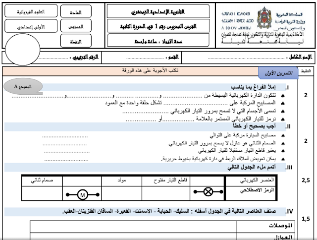 نماذج فروض الدورة الثانية مادة الفيزياء و الكيمياء الأولى إعدادي