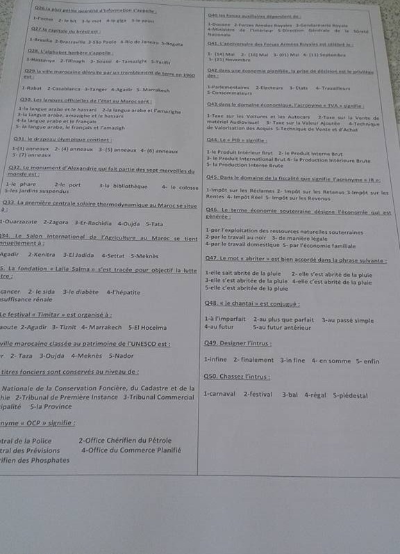 نماذج ومواضيع مباريات الامن الوطني لدورة يوليوز 2016