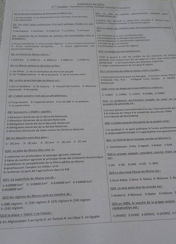 نماذج ومواضيع مباريات الامن الوطني لدورة يوليوز 2016
