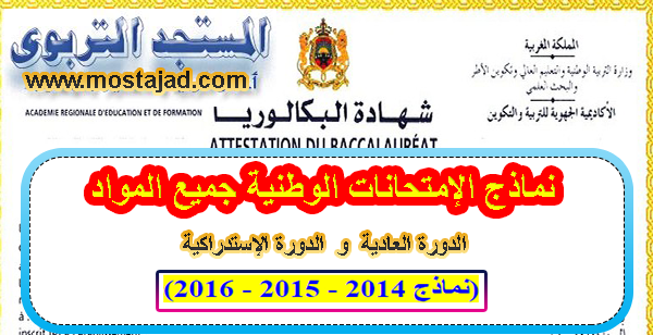 نماذج و مواضيع الامتحان الوطني الموحد للبكالوريا مع التصحيح من 2011 إلى 2015 الدورة العادية و الإستدراكية , الإمتحانات الوطنية الموحدة للبكالوريا مع التصحيح,تحميل جميع الإمتحانات الوطنية مع التصحيح.
