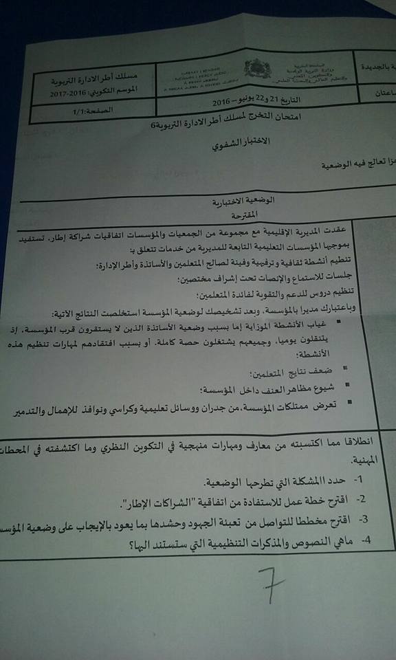 نموذج امتحان التخرج لمسلك أطر الإدارة التربوية – نموذج 10 – الإختبار الشفوي دورة يونيو 2017