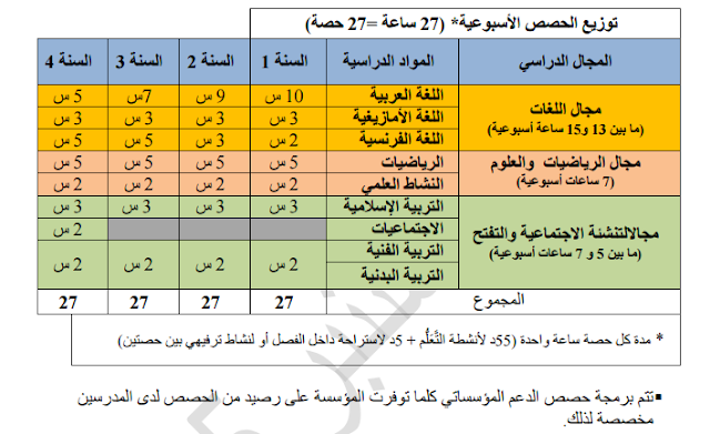 هذا هو الغلاف الزمني و حصص التدريس الذي سيعتمد بالسلك الابتدائي
