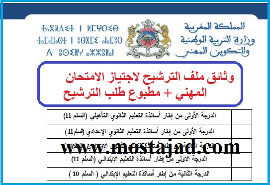 وثائق ملف الترشيح لاجتياز الامتحان المهني + مطبوع طلب الترشيح