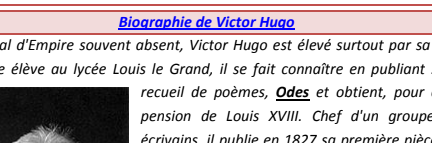 دروس مادة الفرنسية أولى باكالوريا شعبة اداب وعلوم انسانية Biographie de Victor Hugo Pour Télécharger لتحميل الملف