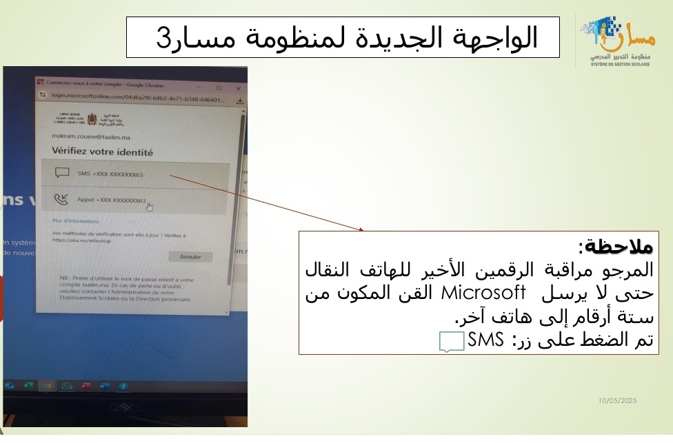 - يتم إرسال رقم مسار والرقم السري عبر البريد الإلكتروني أو SMS بعد تسجيل الملف في المديرية الإقليمية.