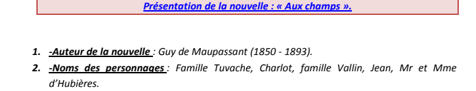 ملخص رواية Aux Champs مترجمة بالعربية PDF Résumé La nouvelle Aux Champs , de Maupassant تحميل قصة درس جدع مشترك علمي